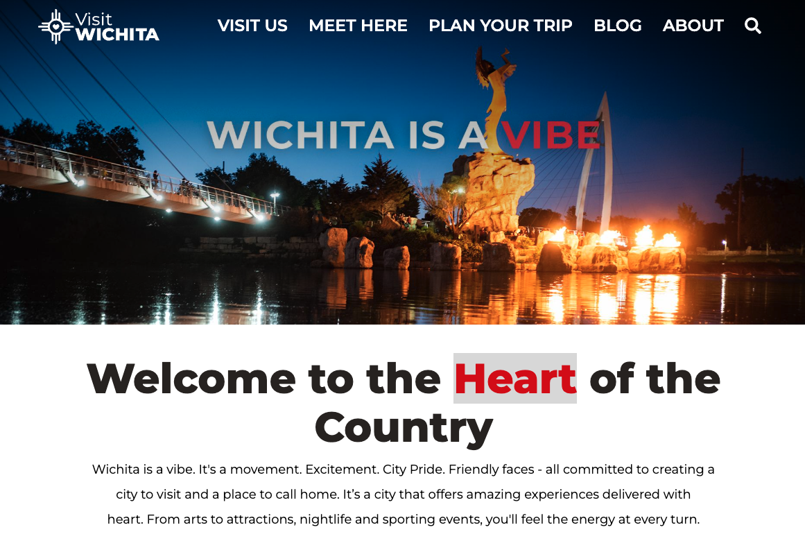 Visit Wichita’s previous website struggled to inspire and retain visitors due to a cluttered interface, inconsistent branding, and limited flexibility for showcasing events, attractions, and seasonal content. The site lacked mobile responsiveness, efficient content management, and performance optimization—ultimately failing to effectively support tourism growth or local business promotion.