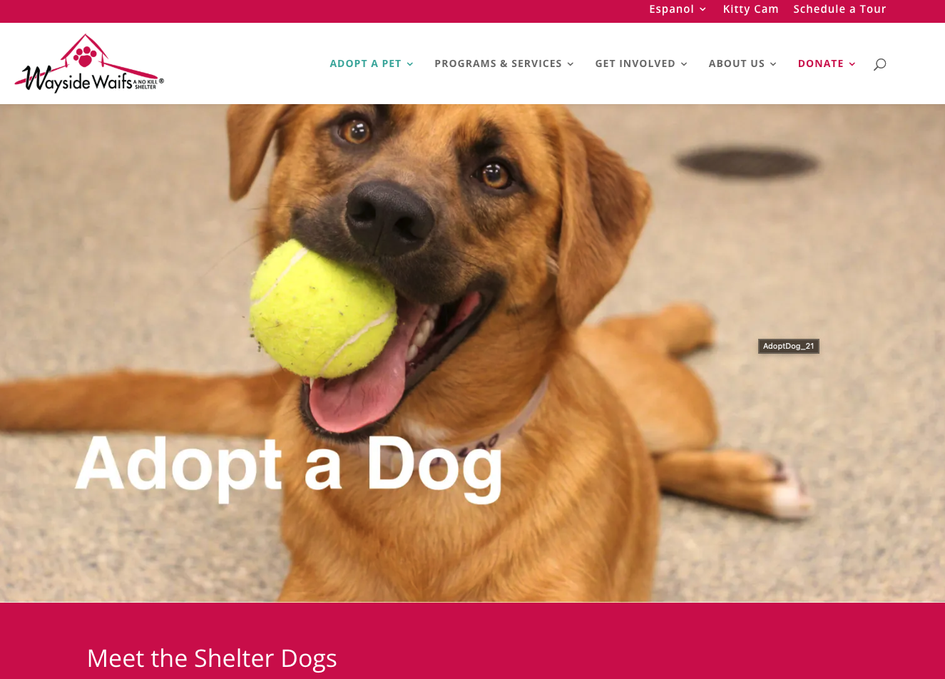 The existing Wayside Waifs website was outdated, difficult to navigate, and not mobile-friendly, resulting in a poor user experience for prospective adopters, donors, and volunteers. The site lacked clear pathways for adoption searches, event information, and online giving, ultimately hindering the organization’s mission to increase pet adoptions and community engagement.